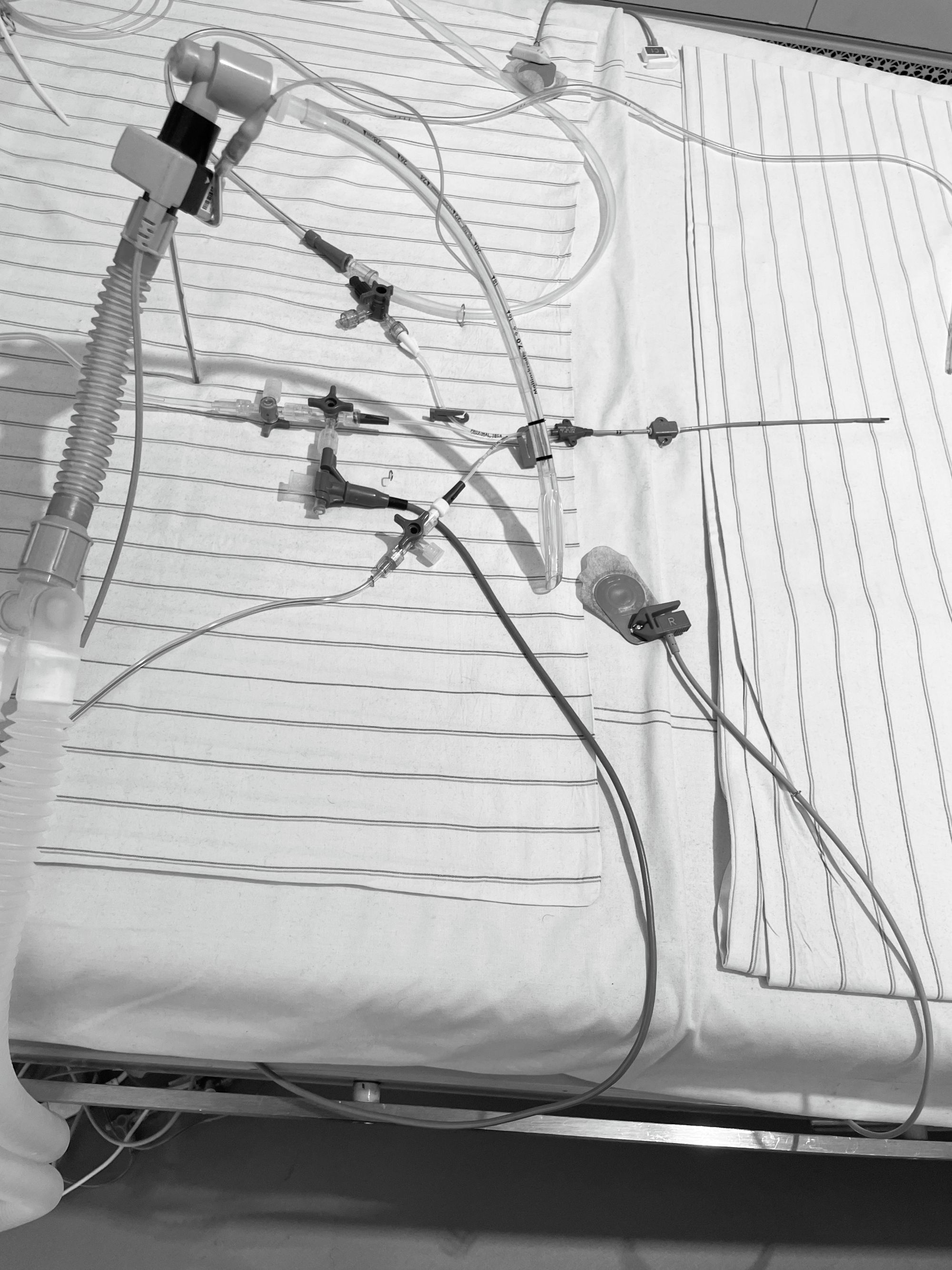 Das Bett, oft der privateste und intimste Ort der Patient*innen, steht unter ständiger Beobachtung von Ärzt*innen, Pflegekräften und Angehörigen. Doch die Blicke sind ein Wechselspiel: Denn auch aus dem Bett werden Blicke geworfen, die Umgebung wird beobachtet, die Augen streifen an der Decke hin und her.